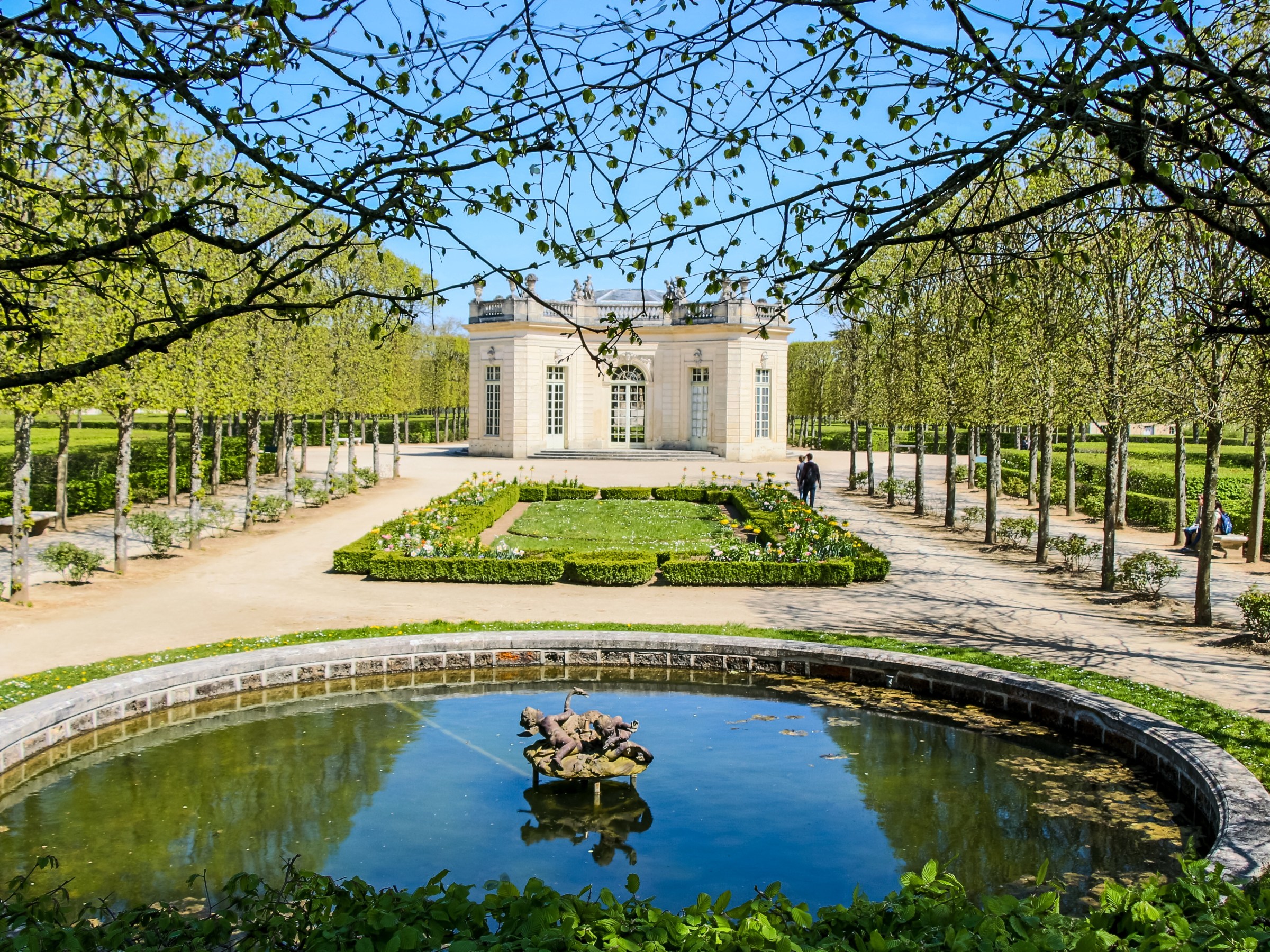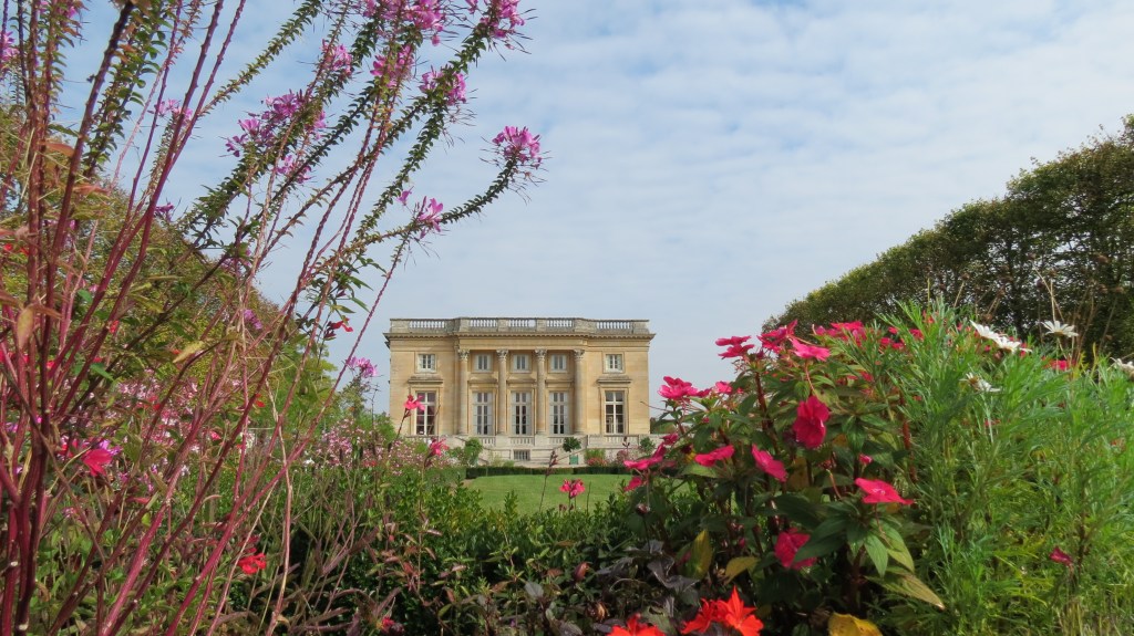 If you’re following your guide from the Grand Trianon then you’ll head across the walkway and into the garden which preceeds the Petit Trianon. It’s filled with wonderfully kept flowers, trees, and a building called the Pavillon Française which is made up of a solitary room where one could open the large doors and enjoy the garden from it’s shade. Think of it as a massive gazebo. Aunt River and I took to calling it the Mini Trianon. Follow that garden and you’ll be lead right to the Petit Trianon.