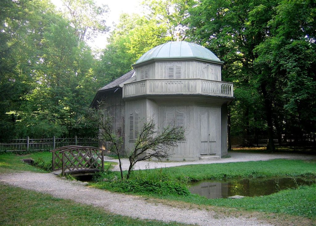Although it is not directly stated, it is inferred that the Prinzengarten is a child’s playhouse. It is the Princes’ Garden, if translated literally. You cannot go inside from my knowledge, but from the outside it can be observed that the two story building with a patio at the back is made up of wood, though has been painted to look like a stone building, complete with both false windows and working ones. It is surrounded by open fields in which a child could play, as well as a little brook and bridge at the back of the house.